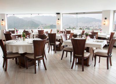 Deléitese con nuestra exquisita oferta gastronómica en el elegante y reconocido “Restaurante El Escorial” donde podrá saborear los más selectos platos con tendencia española, sin dejar de lado nuestros sabores regionales y si lo prefiere disfrute de nuestra carta de bebidas en el “Bar El Refugio” y complazca aún más sus sentidos. Contamos además con 4 salones que harán de sus eventos sociales o empresariales una memorable experiencia regida por la altura, sobriedad y distinción que usted, su familia y sus clientes merecen.