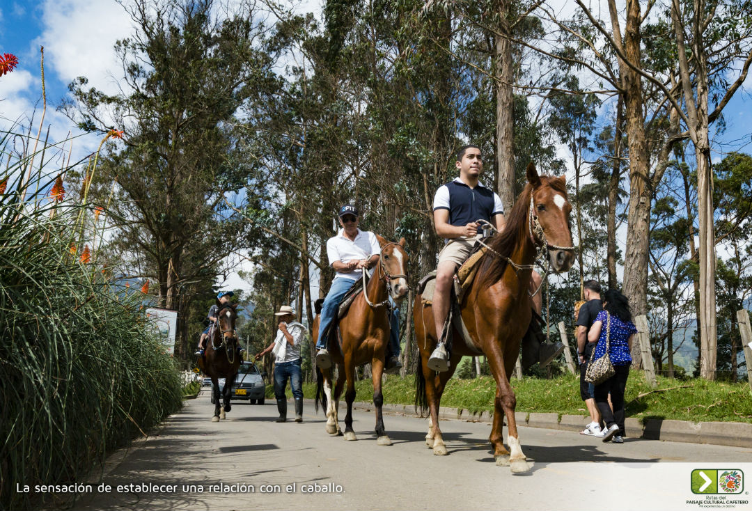 Ya sea disfrutando del bello paisaje de La Tebaida, el Valle de Santágueda, Peñas Blancas, paseando entre palmas gigantes en el Valle del Cocora, bordeando el río Barragán, el cañón del río La Vieja, o la cuenca del río Otún, o en tierras caldenses de Aranzazu, Aguadas, Pácora o Salamina, en el Paisaje Cultural Cafetero encontrarás mucho más que cabalgatas.