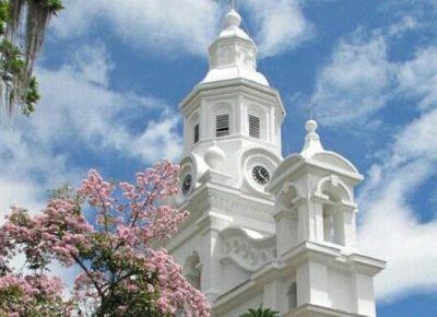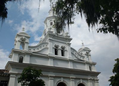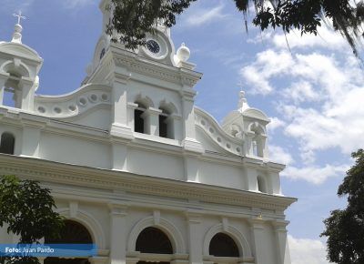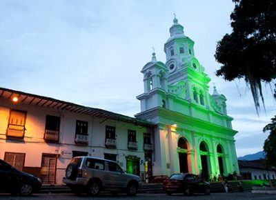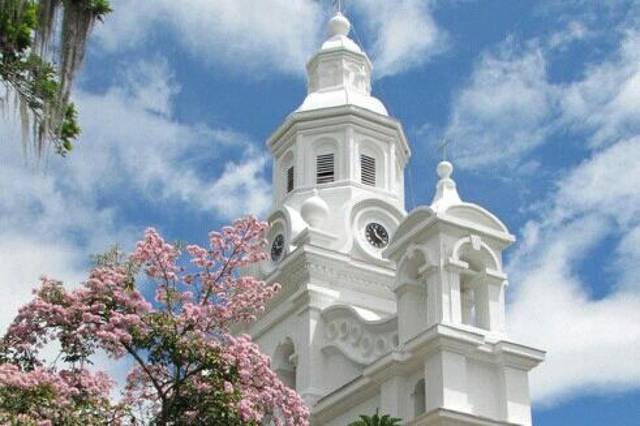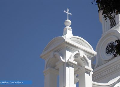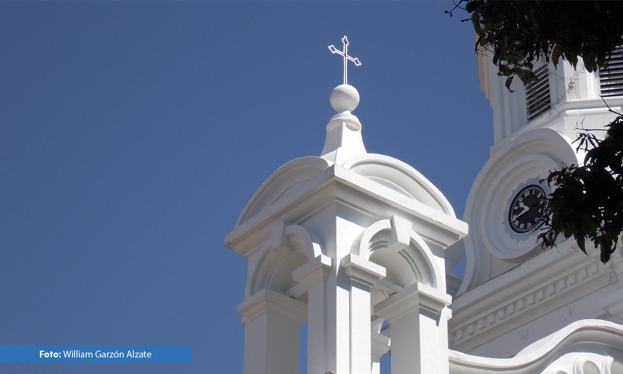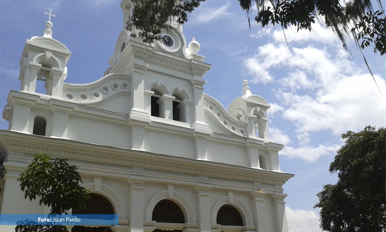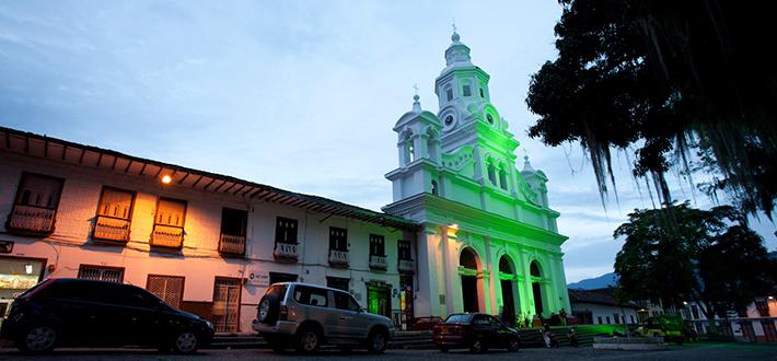 El Templo, consagrado a la Inmaculada Concepción comenzó a edificarse en el año 1.865 bajo el impulso del presbítero Francisco Antonio Isaza. El frontispicio del templo constituye uno de los más bellos conjuntos arquitectónicos de estilo Románico. Compuesto por cuatro cuerpos, en los cuales se destaca la elegancia y la sobriedad, termina en una torre que emula la del templo de Salomón. Su interior es un amplio espacio desprovisto de columnas elegantemente decorado en madera tallada, ricos y vistosos vitrales, un coro acompañada por un organo tubular, una pila Bautismal, un Púlpito y un buen número de confesionarios. Las campanas fueron construidas con monedas de oro, joyas, metales y el reloj fue traído por el Sacerdote José Joaquín Barco dando inmensa alegría a la población para de esta manera dar por terminado dicho Templo, el que hoy en día es un honor para la ciudad de Salamina. Terminado a finales del siglo XIX por el arquitecto inglés William Martín; su gestor fue el Pbro. Juan María Valencia. La fachada principal posee un fuerte acento renacentista a raíz de los elementos de influencia griega y románica. Su espacio interior está constituido por tres naves adornadas con imaginería representativa y retablos finamente tallados.