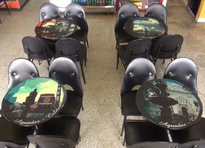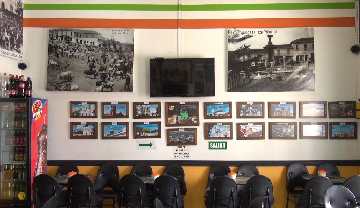 En Aguadas basta con llegar al parque principal para sentir el imán de la cafeteria «EL PARQUE», popularmente conocida como «donde suizo» Lugar amable que nos transporta en el tiempo, Recordando el Aguadas antiguo y mostrando el presente, en hermosas fotografias en diversos formatos, de sitios, monumentos,fiestas y personajes representativos del municipio.