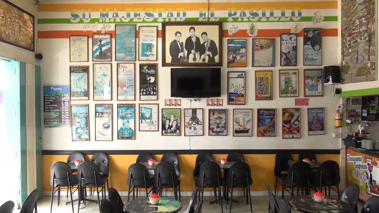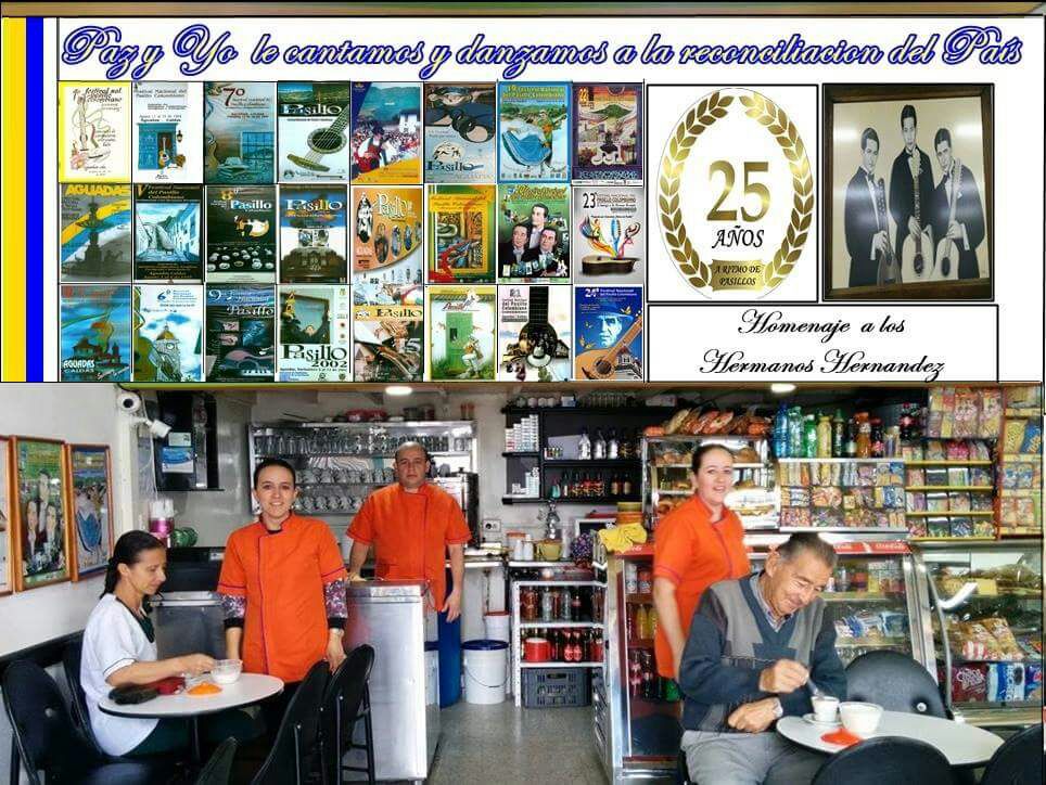 «DONDE SUIZO», diagonal al imponente templo de la Inmaculada Concepción está bellamente decorada con los afiches de todas las versiones del Festival Nacional del Pasillo Colombiano, lo cual aumenta el aire de nacionalismo en el más puro sentido y permite la remembranza sobre lo que ha sido y es esta fiesta folclórica de raigambre andina y reconocimiento en el país.