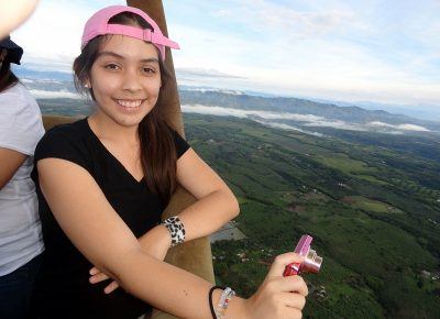 La experiencia del vuelo en globo inicia para los viajeros cuando participan en el proceso de inflado que dura 30 minutos, continua con el recorrido en el aire unos 45 minutos, donde el viento dirigirá el recorrido, mientras en tierra Adriana Gómez Balbín hace seguimiento en su 4×4 para recoger a los aventureros en el punto de aterrizaje y llevarlos de vuelta al punto de despegue.