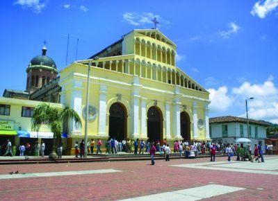La construcción, inspirada en la catedral de Pisa en Italia, inició en 1867 y terminó en 1950, sin embargo, un temblor en 1961 derrumbó las dos torres de los campanarios que no se volvieron a reconstruir. La iglesia actual expone en su interior varios cuadros que representan el vía crucis de Jesús pintados al óleo por el artista local Gonzalo Díaz.